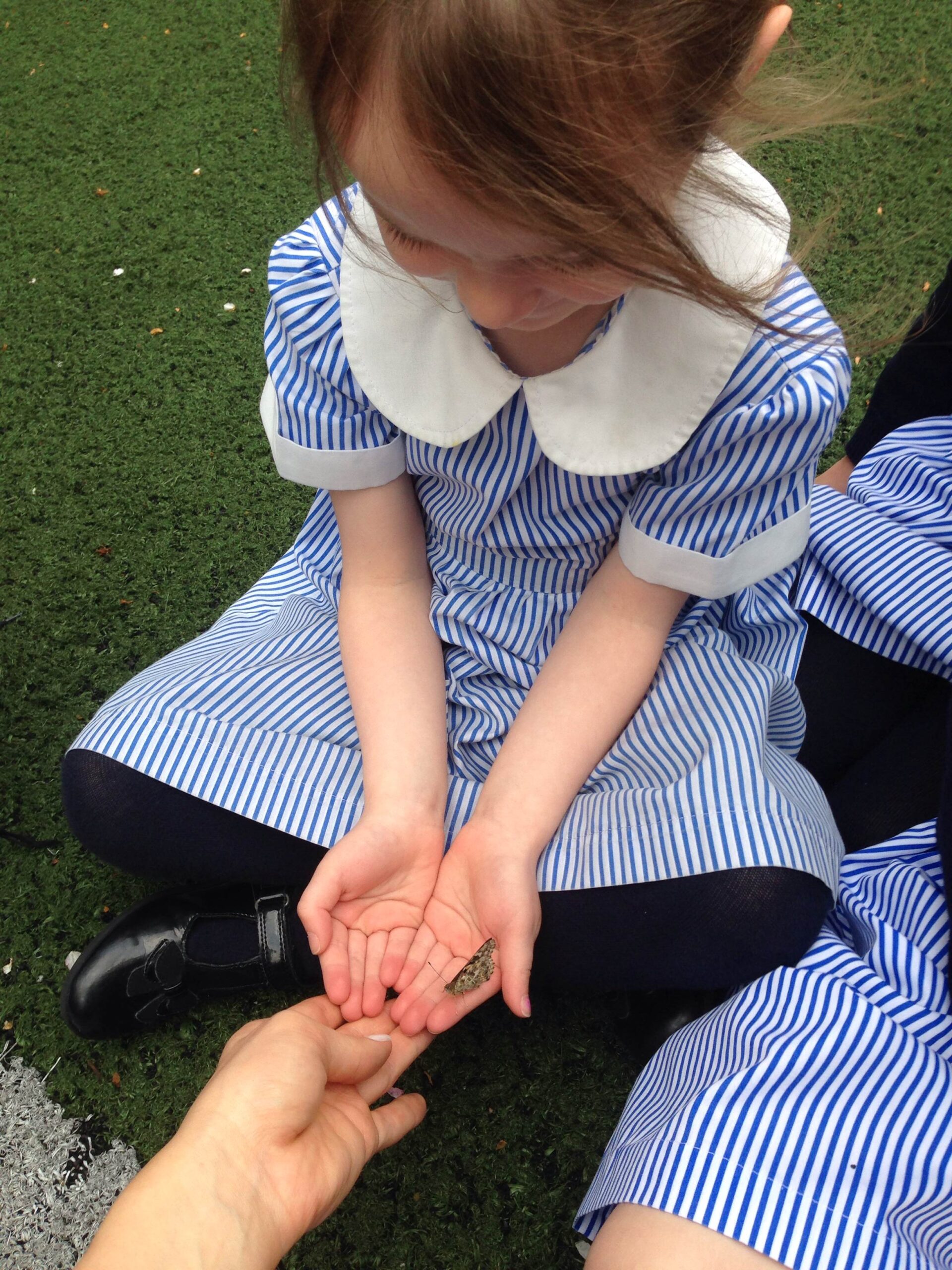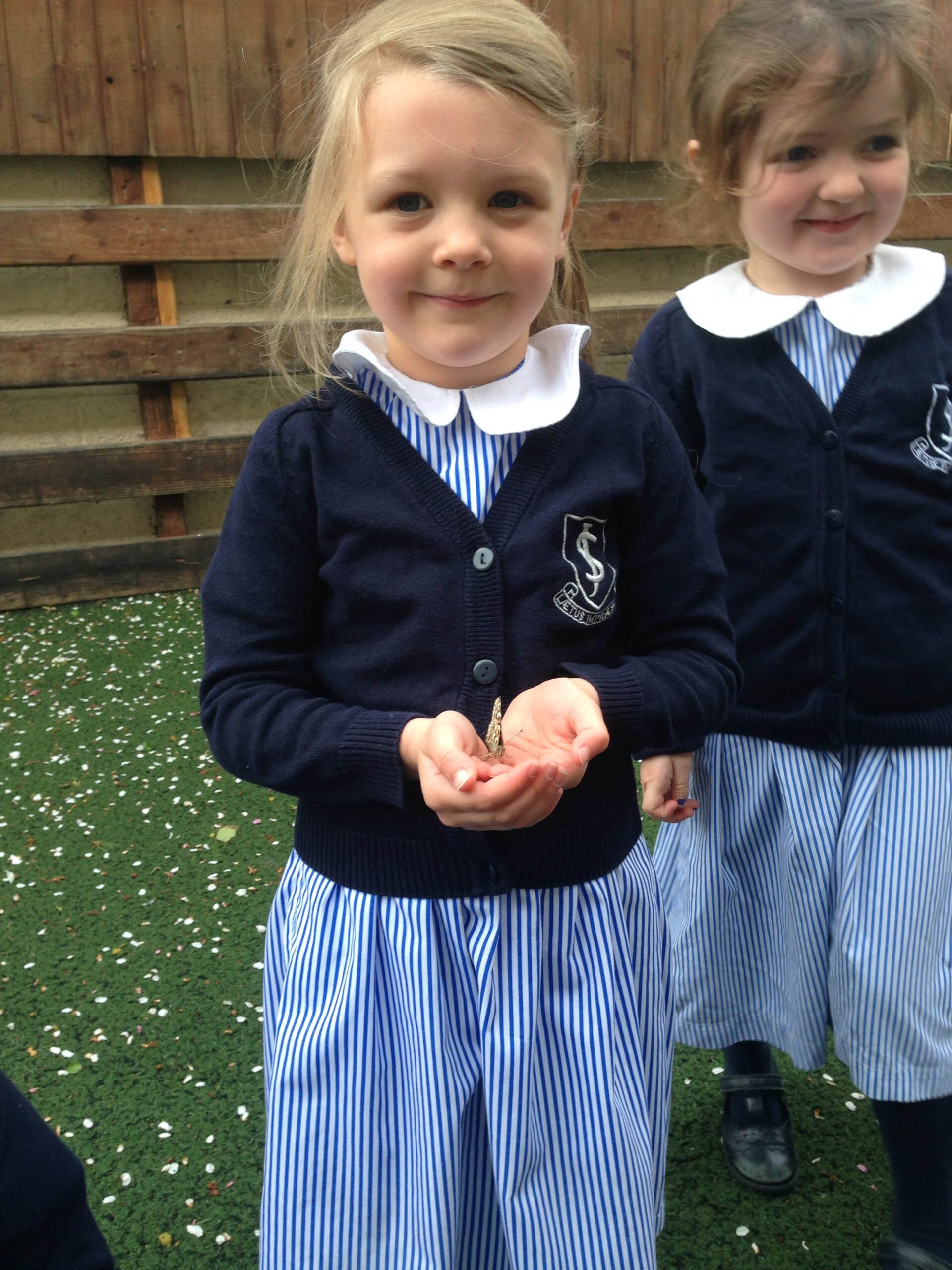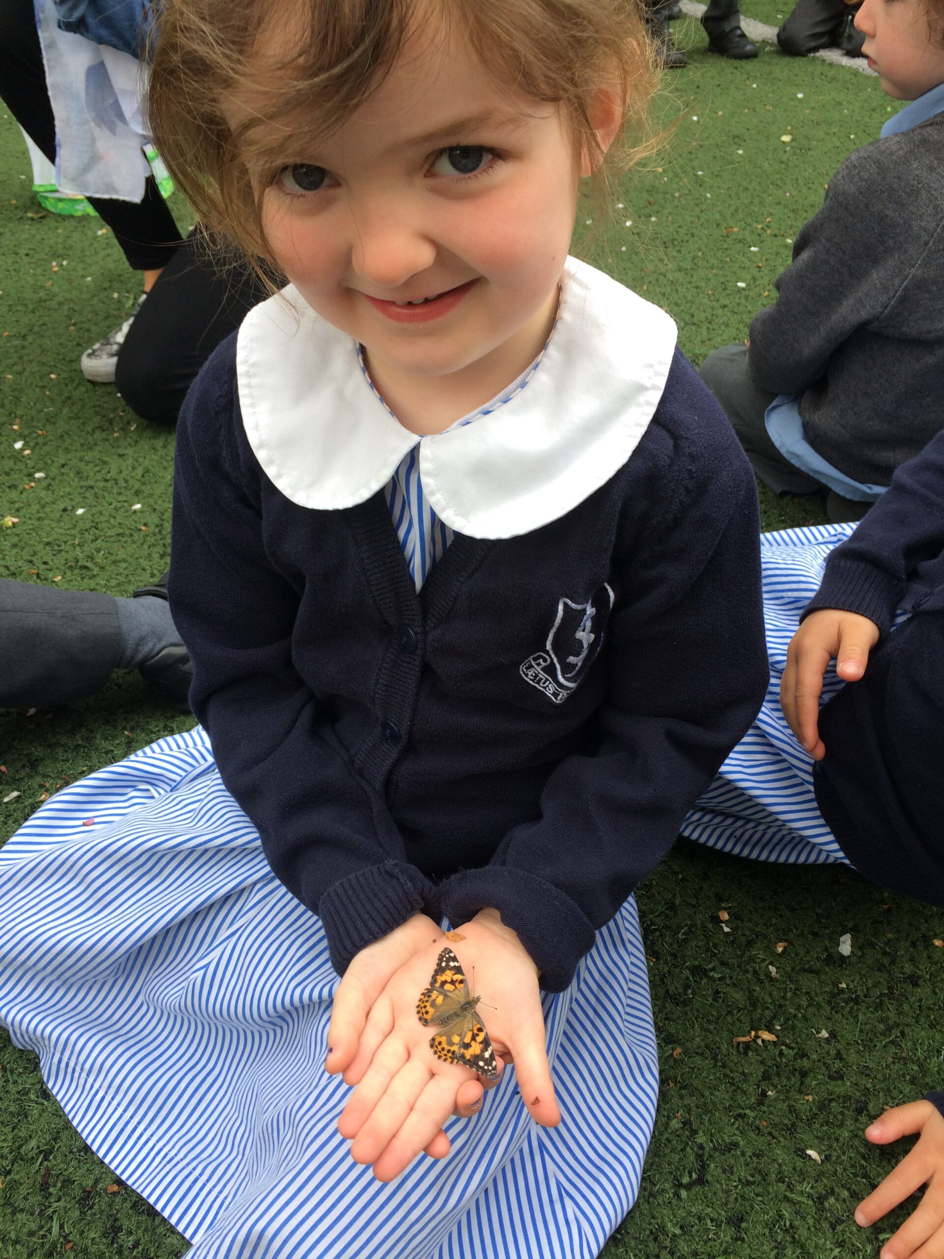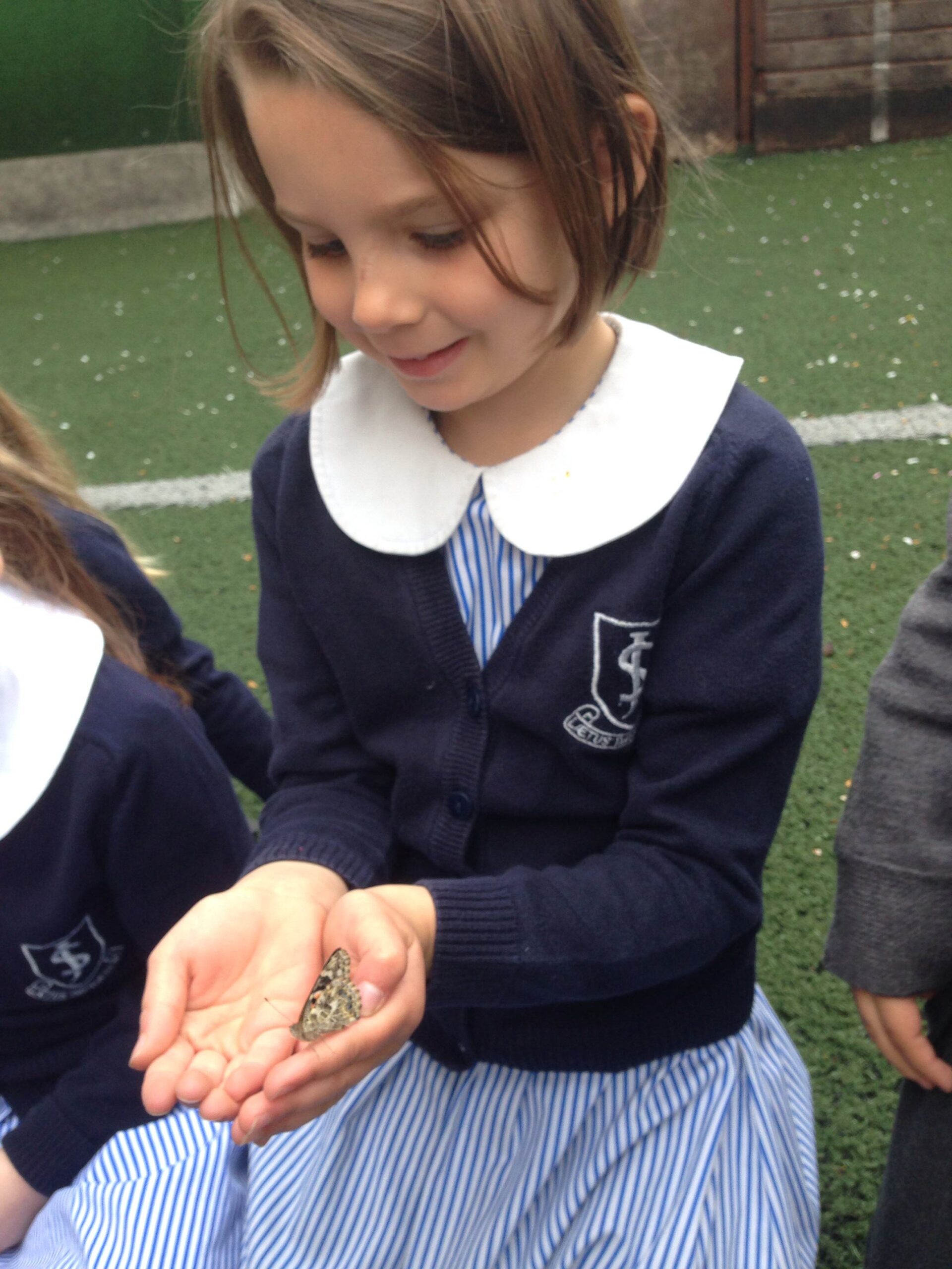 May 17, 2016The Junior Infant children have been busy learning about the wonders of the life cycle of a butterfly. They had caterpillars in their class room for the last number of weeks. They observed how it went from being a butterfly to spending time in it’s chrysalis and then finally as it turned into a butterfly. During the week the Junior Infant children released their butterflies into the world. What a beautiful experience.