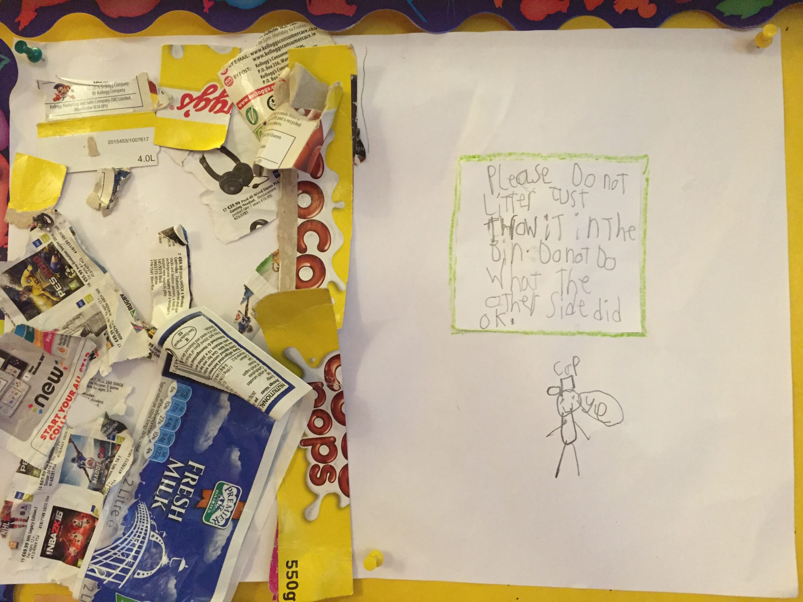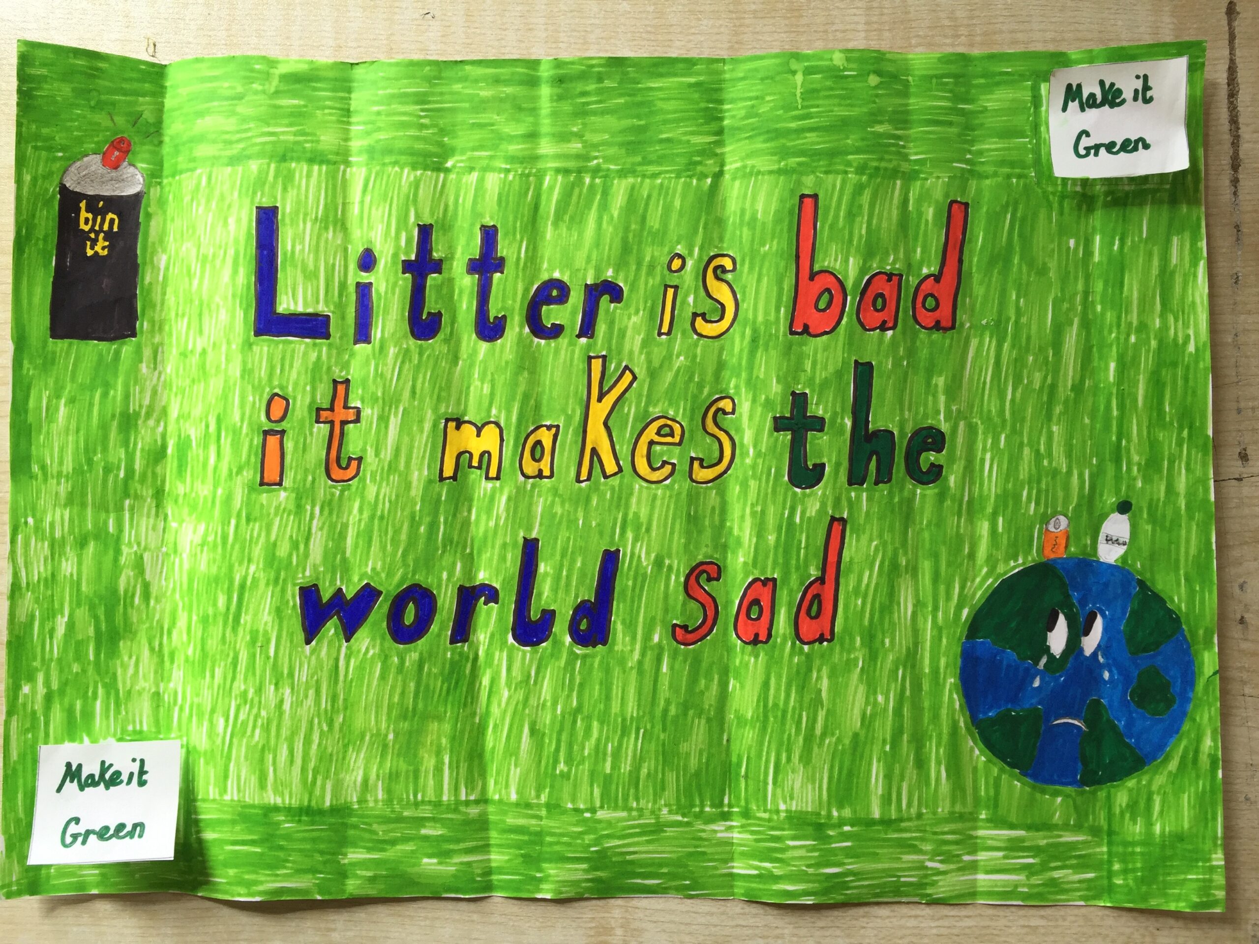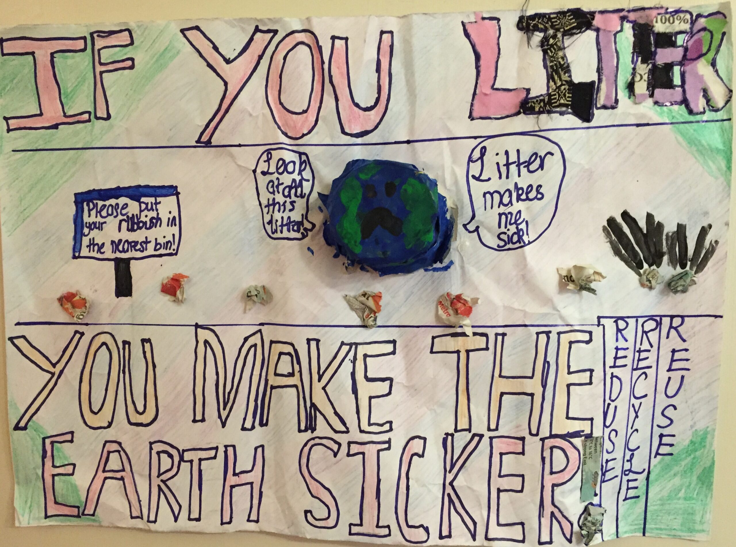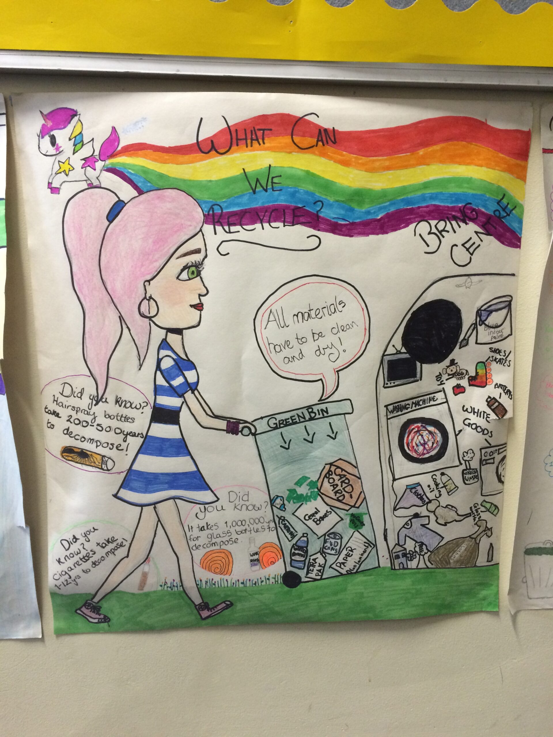 April 27, 2016For the last few weeks the children have been busy creating posters to increase awareness for recycling. This is part of our Green School Flag initiative. We had some very creative efforts and slogans such as: Slam dunk the junk! and Stop before you Drop.